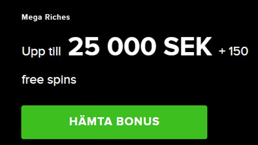 - Gör en insättning på minst 100 SEK & få upp till 25 000 kr i bonus + 150 Free spins