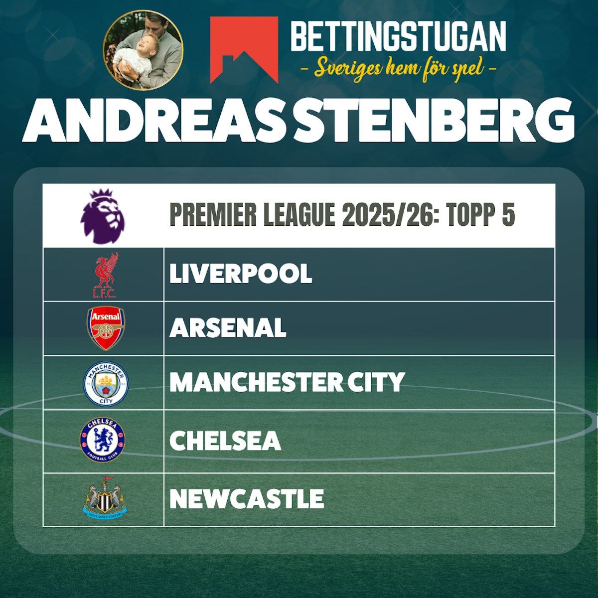 Att ge sig på att tippa hur toppen av tabellen kommer se ut i Premier League 2025/2026 är ingen lätt uppgift, men vi har hur som helst låtit våra experter, tipsters och kända ansikten göra sina topp 5-tabeller och så här ser tipsen ut inför den säsong vi har att se fram emot!