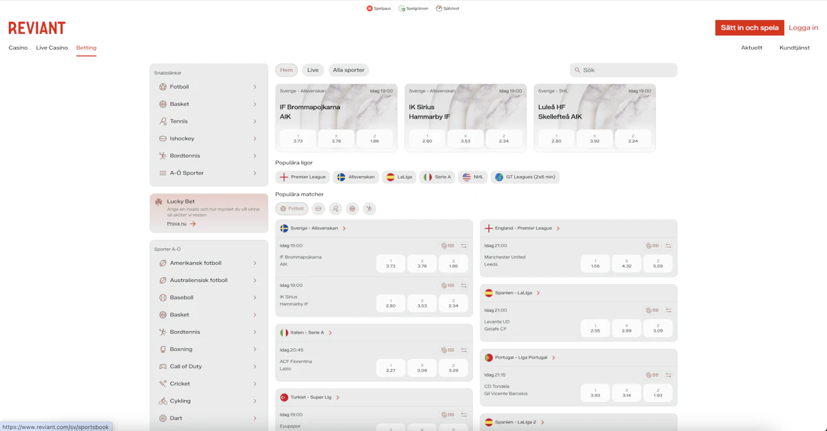 Det gör Reviant till ett intressant alternativ för den som vill kombinera casinospel med sportspel.