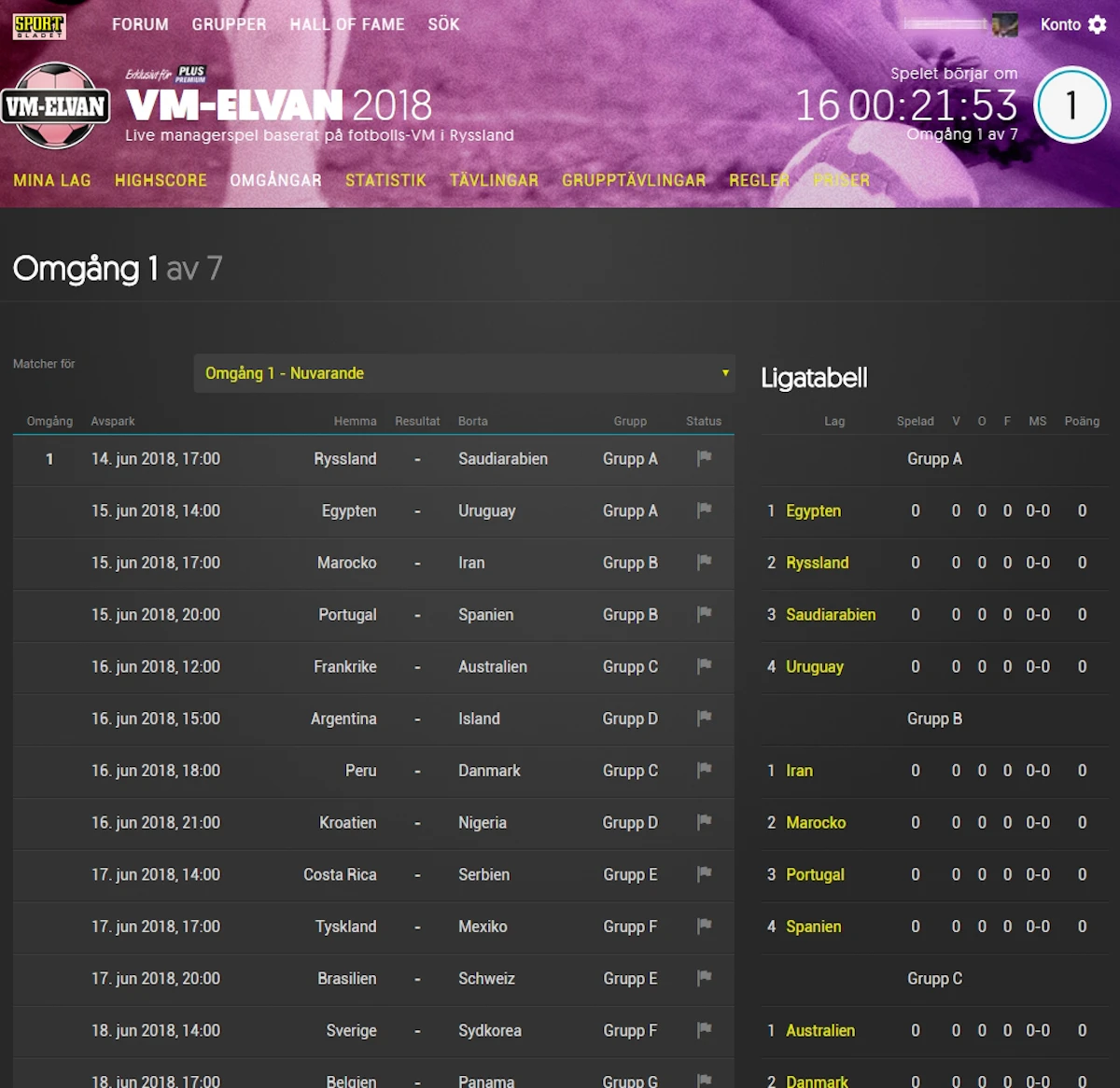 Vanligtvis väljer många svenskar att spela på Aftonbladets VM-Elvan, det krävs dock att du blir pluskund hos sportbladet för 69kr för att spela. Här tävlar du dels mot alla som har skapat ett lag hos Aftonbladet men du kan också skapa din egen liga och tävla på med kollegorna, kompisarna eller släktingarna.